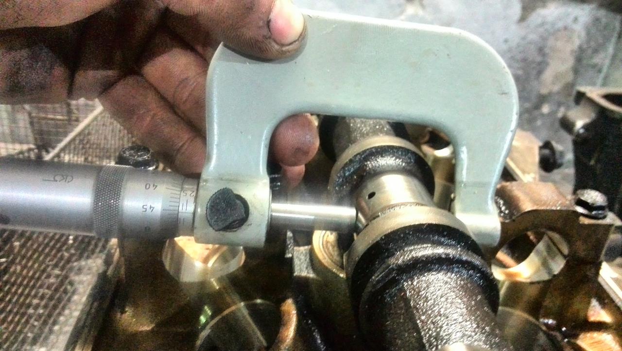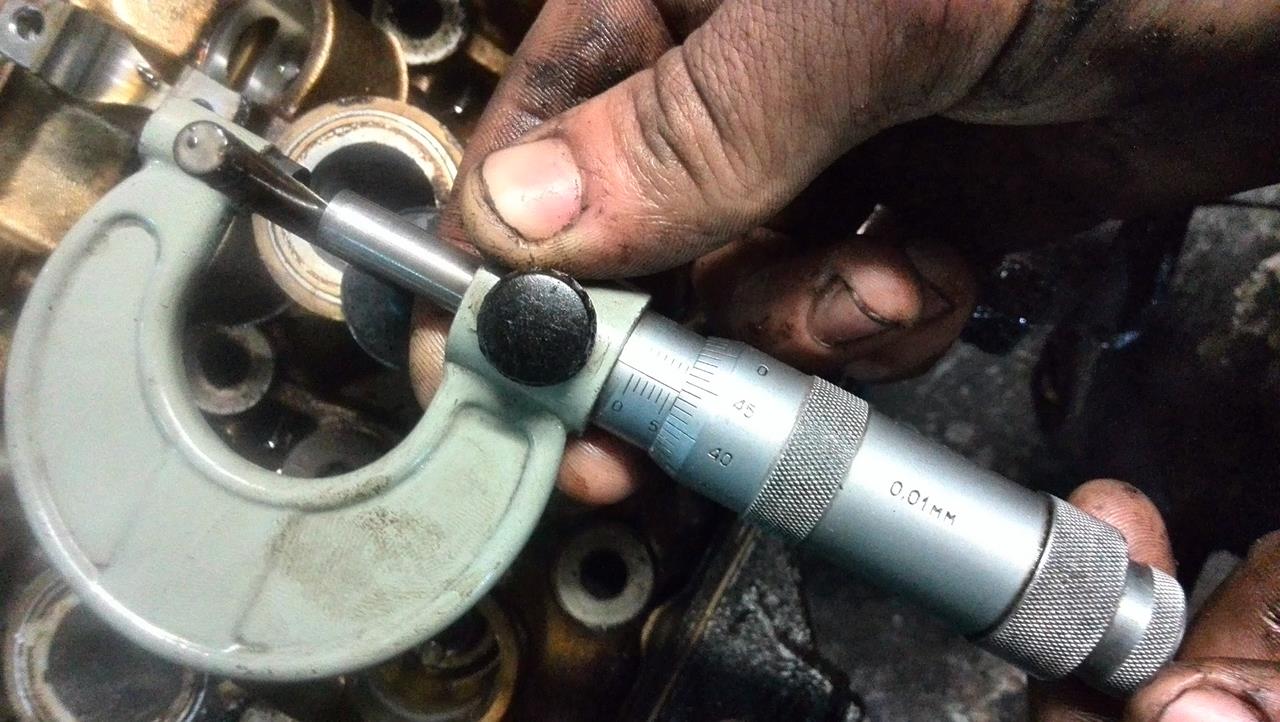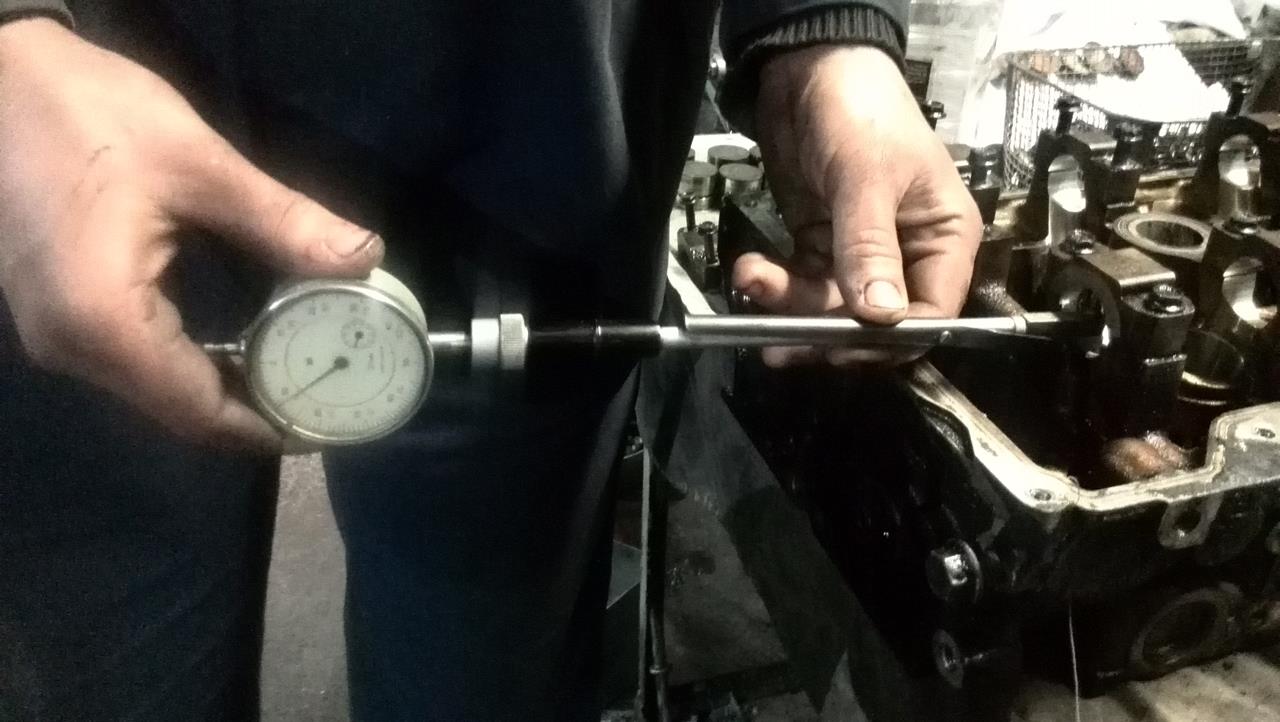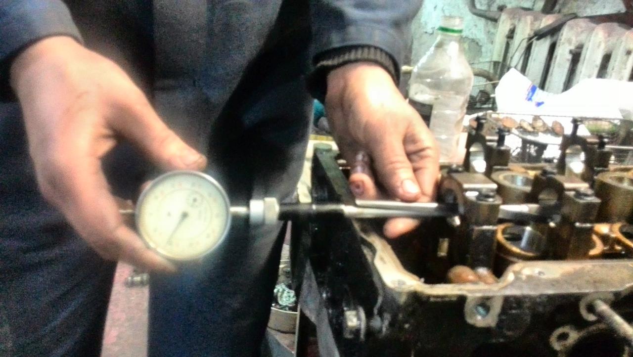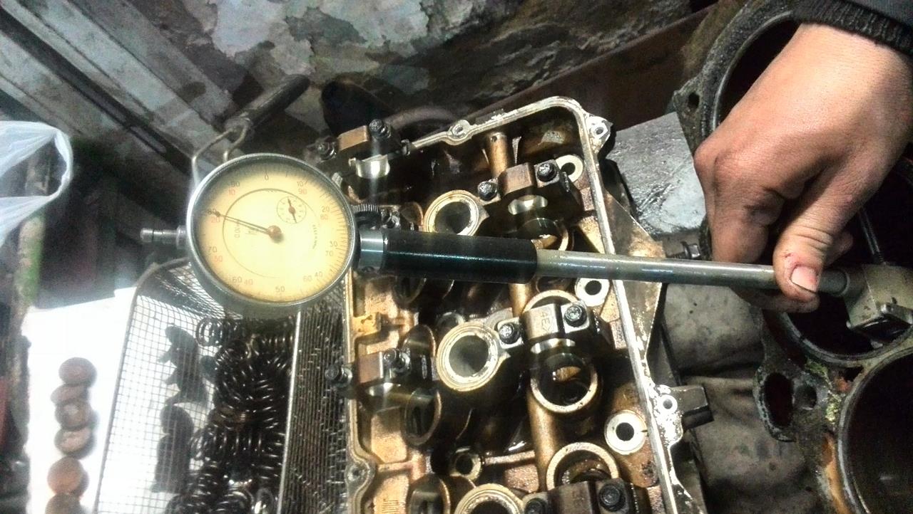Окончательная разборка и замеры показали следующее - Головы. 1.Клапана в принципе по штокам не изношены,максимально обнаруженный конус 0.01 мм,но на выхлопных клапанах тарелки подрасклепаны,на фото не очень видно,но реально,после проточки фасок они сильно выйдут за допуск.Выхлопные я бы поменял. 2.Направляющие.Выхлопные с большим износом(конус к цилиндру),впускные 0.06-0.09 мм.В принципе,еще в допуске,но лучше конечно и впускные поменять. 3.Распредвалы. 26.95 мм - размер в норме,просто полирнуть. 4.Постели распредвалов изношены сильно.Размер пляшет от распредвалов 0.07 - 0.2 мм.Желательно в координатку. 5.Посадочные компенсаторов в норме,компенсаторы желательно поменять. Головы еще не опресовывал. Блок. 1.Поршневая показала 92.90 -92.92 мм.На 3 поршнях высыпало перегородки.Поршня под замену. 2.Цилиндры от поршня показали 0.12 - 0.22 мм с плавающей геометрией по цилиндру в разных плоскостях и высотах.Т.к. поршня по-любому менять,лучше сразу взять 0.25 или 0.5 и расточить. 3.Коленвал.Шатунные шейки 54.94 - 54.95 мм,коренные 64.34 - 64.35 мм.В норме,но большой прогиб по валу - 0.12 мм.Нужно править. 4.Постели коленвала.Негеометрия до 0.04- 0.06 мм(допуск до 0.02 мм),0.06 мм на центральной постели,рядом до 0.04 мм,на крайних в допуске. Постели коленвала надо делать. 5.Постели шатунов. 2 шатуна в допуске,2 на грани допуска и 4 за размером(негеометрия 0.03 - 0.04 мм.Допуск 0.016 мм).Нужно протачивать. 6.Маслонасос нужно или менять или делать в координатке.Шестерни в зацепе нормальные,а вот по плоскостям изношен.
