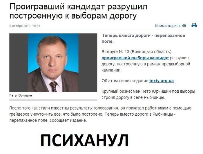 У нас кандидат від ПР будував дороги, дитячі майданчики, проводив воду, газ, каналізацію, возив екскурсії, просто грошима допомагав і т.д. -