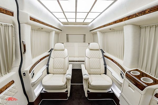 Каждое сидение оборудовано индивидуальными подстаканниками, светильником, ночной подсветкой! Для одной из ниш, возле заднего дивана разработали и установили автомобильный бар!