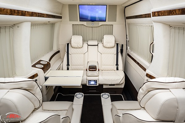 Один из самых важных моментов в показателе комфорта – это отсутствие шумов. В представленной модели Sprinter их нет, мастера тюнинг ателье, произвели полную шумоизоляцию автомобиля, перед его переоборудованием.