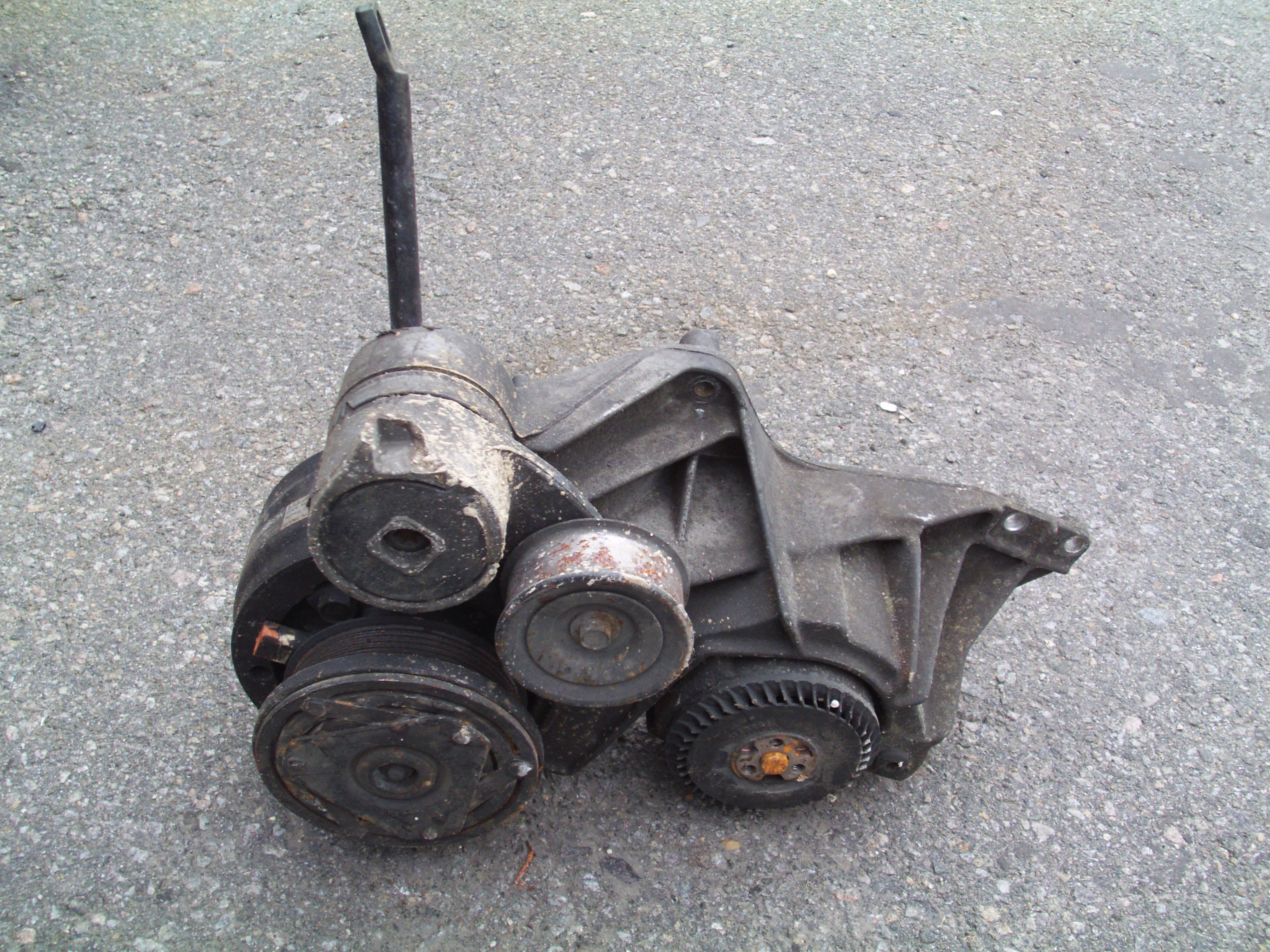 1) левый кронштейн с натяжителем. На нем прикручен копрессор кондишена, который я сниму и поставлю туда ролик для его удаления, который я не успел поставить на 3.1 и который универсальный для V6 и V8