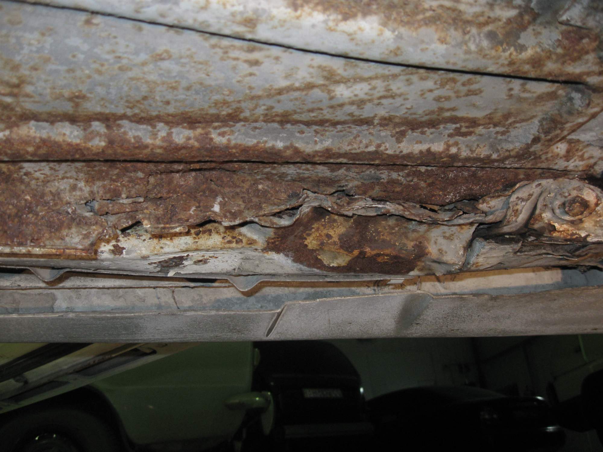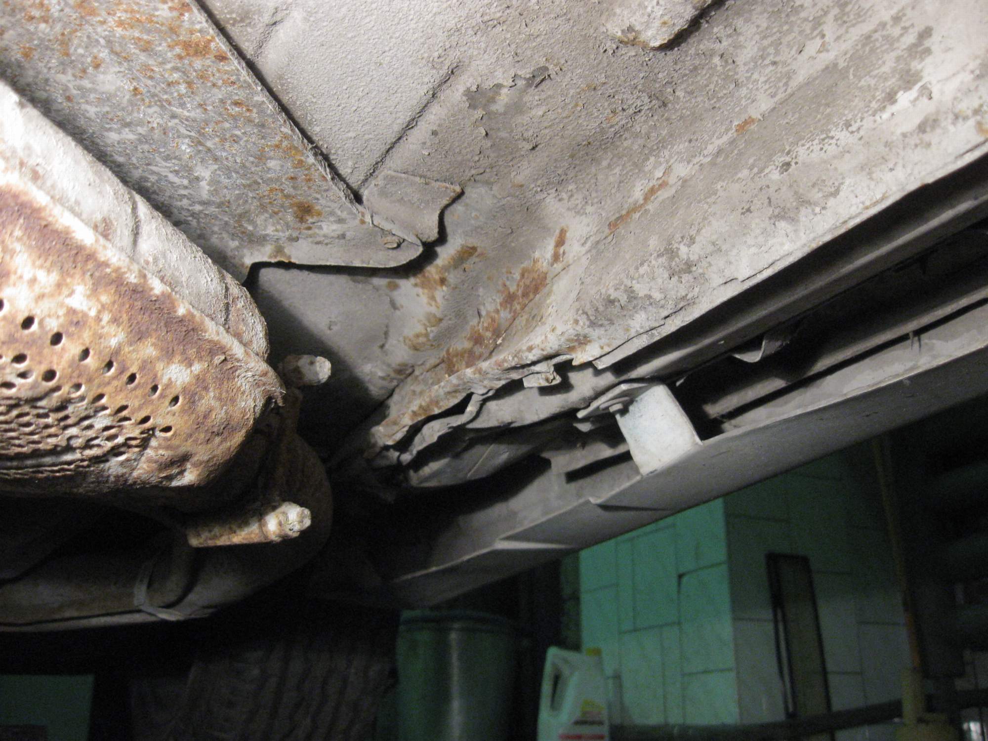 Загнал на яму, открыл капот, проверил масла, тосол, кинул аккому, вставил ключ и на моё удивление с пол пина, заглушил. Нырнул в яму, коробка течет вся, дырки от коррозии местами сквозные, тормозные шланги на месте, значит можно ехать ! ) Выехал, прогрел, загнал, заглушил.