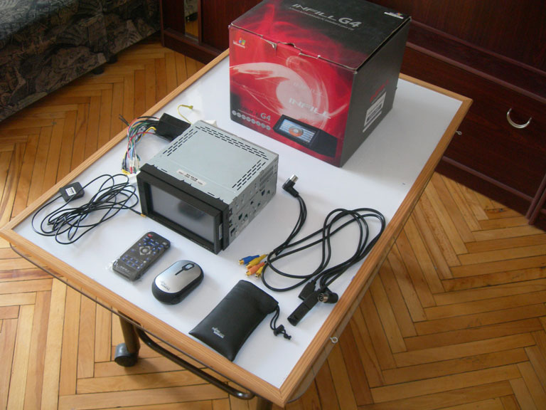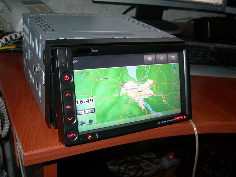 Продам корейский автомобильный компьютер infill G4.Windows XP Компьютер полностью совместим со стандартом 2din. Диагональ тач монитора 6,5 дюймов, процессор VIA C7, 1.5Mhz, память 512mb но возможность увеличения до 1 гб, жесткий диск 40Gb, встроенное радио, GPS, выход на камеру заднего вида с автоматическим переключением, CDRW/DVD-R, (т.е. возможность записывать диски) встроенный пред усилитель на 44 ватт на 4 канала, как у автомагнитол, возможность подсоединения любой USB аудио карты. Имеет 3 выхода юсб: два на задней стенке, один на лицевой панели. В комплекте: коробка, антенны для GPS и телевидения (в Украине не поддерживается), пульт, документация, вся необходимая проводка, мышка. подобный девайс представляет из себя готовое решение для установки в авто.